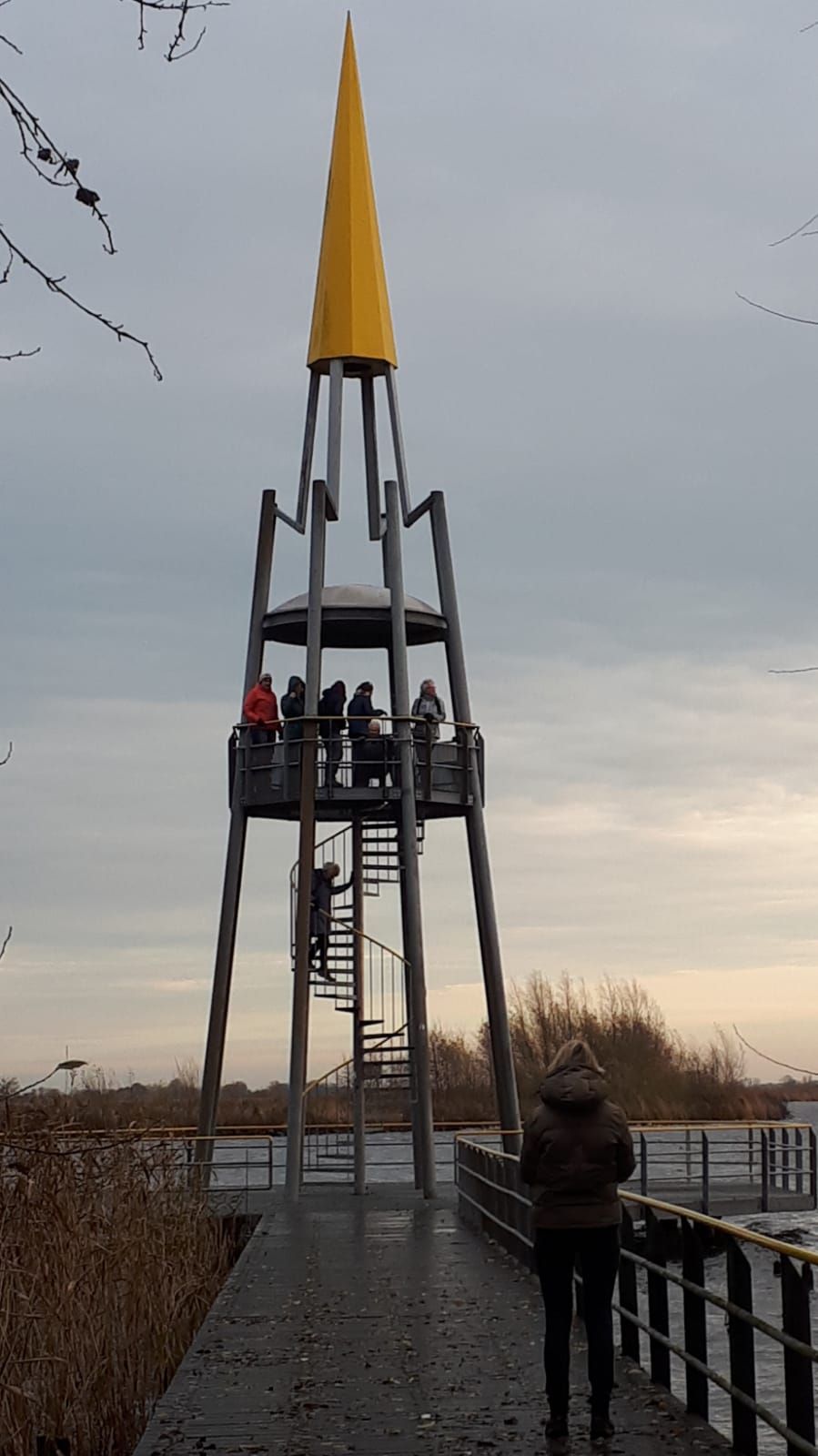De groep die elke eerste maandag wandelt, groeit gestaag. Maandag 1 december waren we met z'n tienen. Vanuit Offenwier (fam. Landman) hebben we over de Potten gewandeld en daar onderstaand gedicht gelezen. Ook de uitzichttoren beklommen (zie foto), daarna bij Baukje op de koffie.