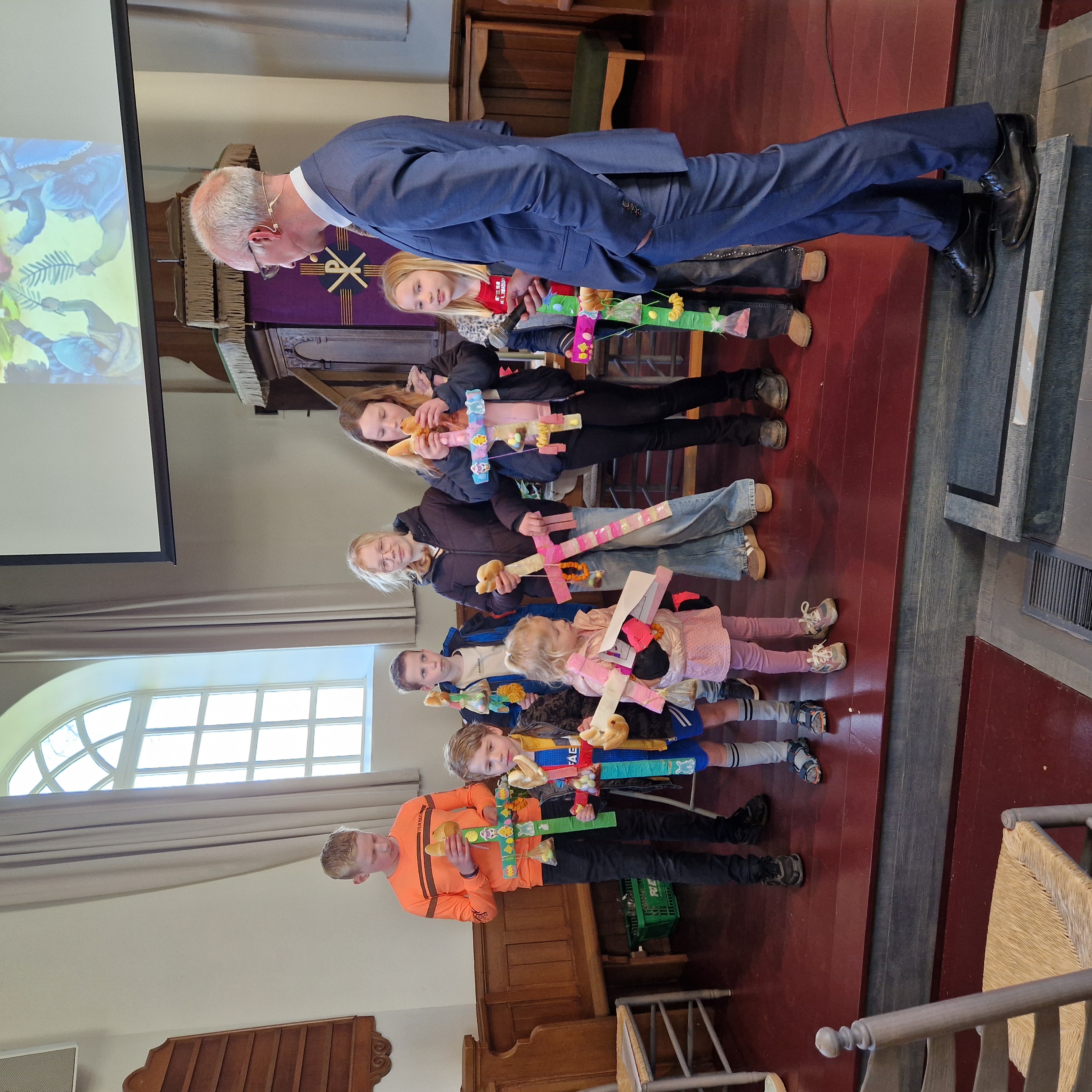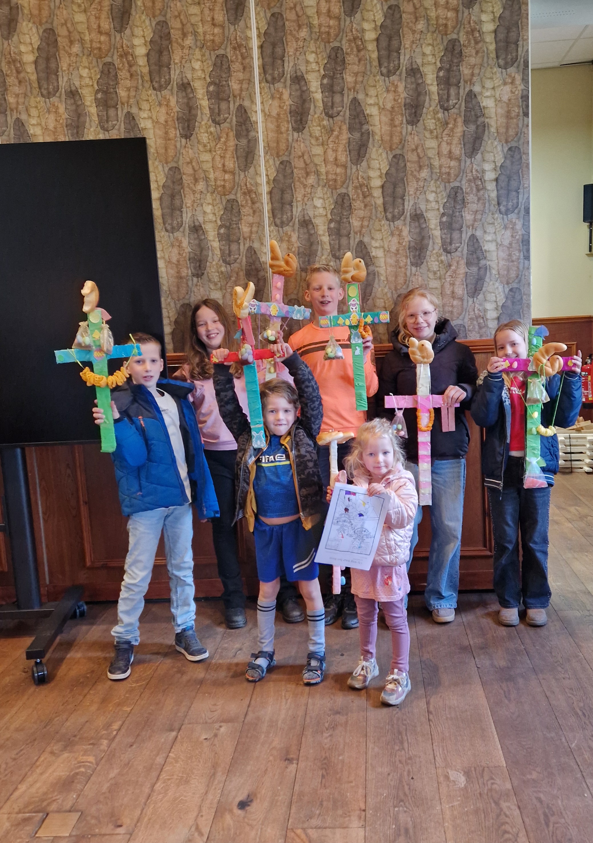 Kinderen van alle leeftijden hebben goed hun best gedaan om prachtige palmpasen stokken te maken.