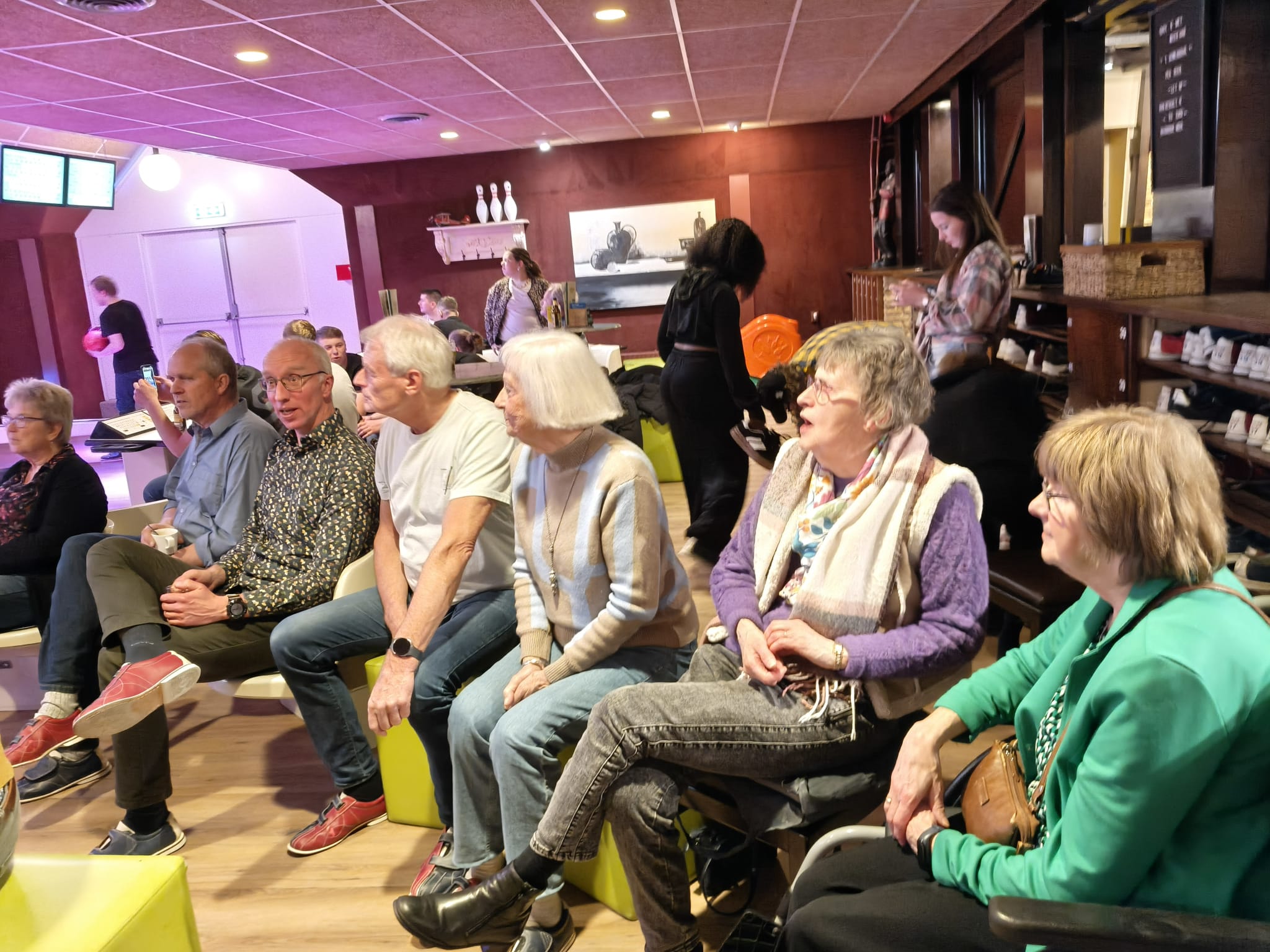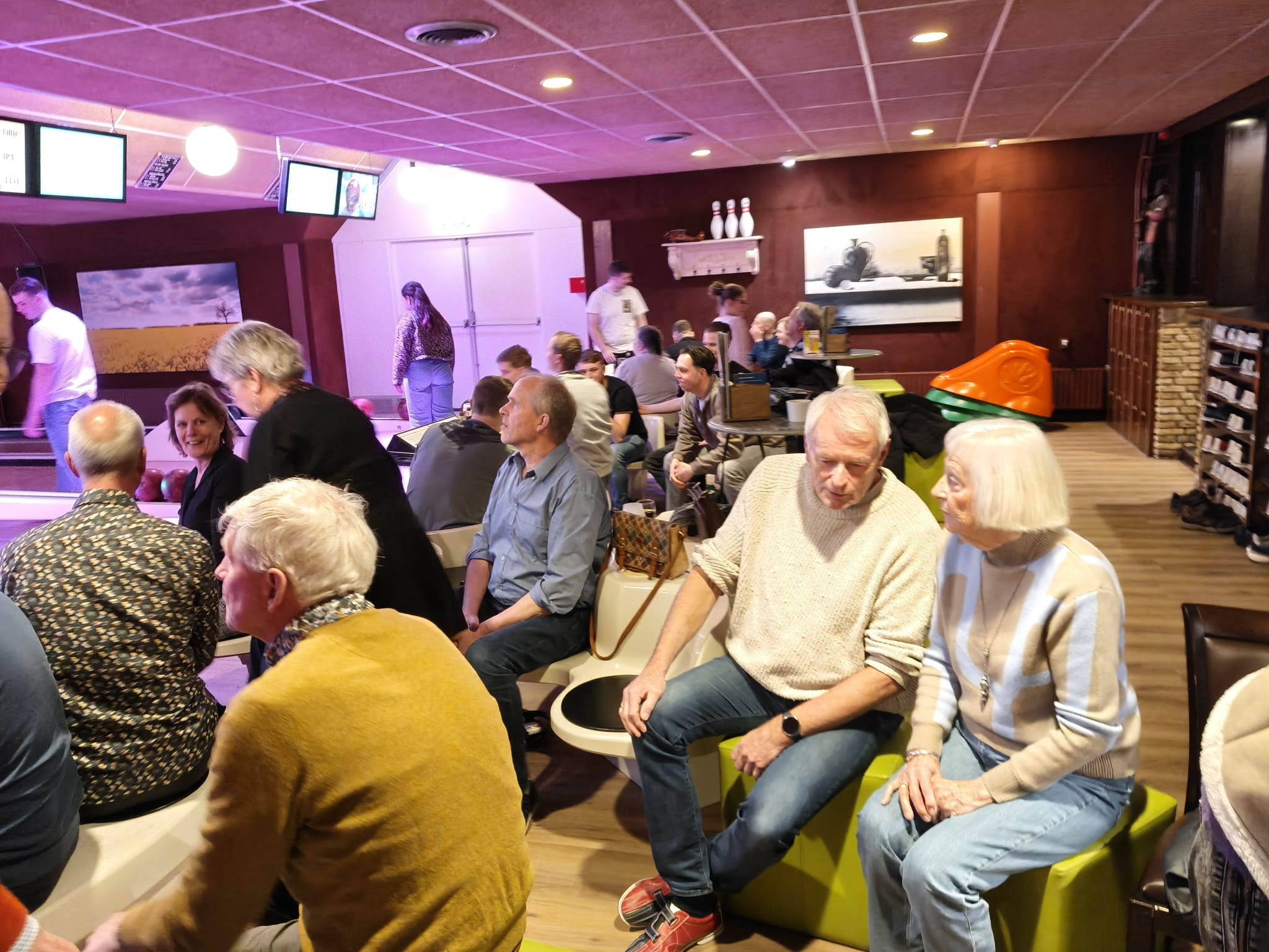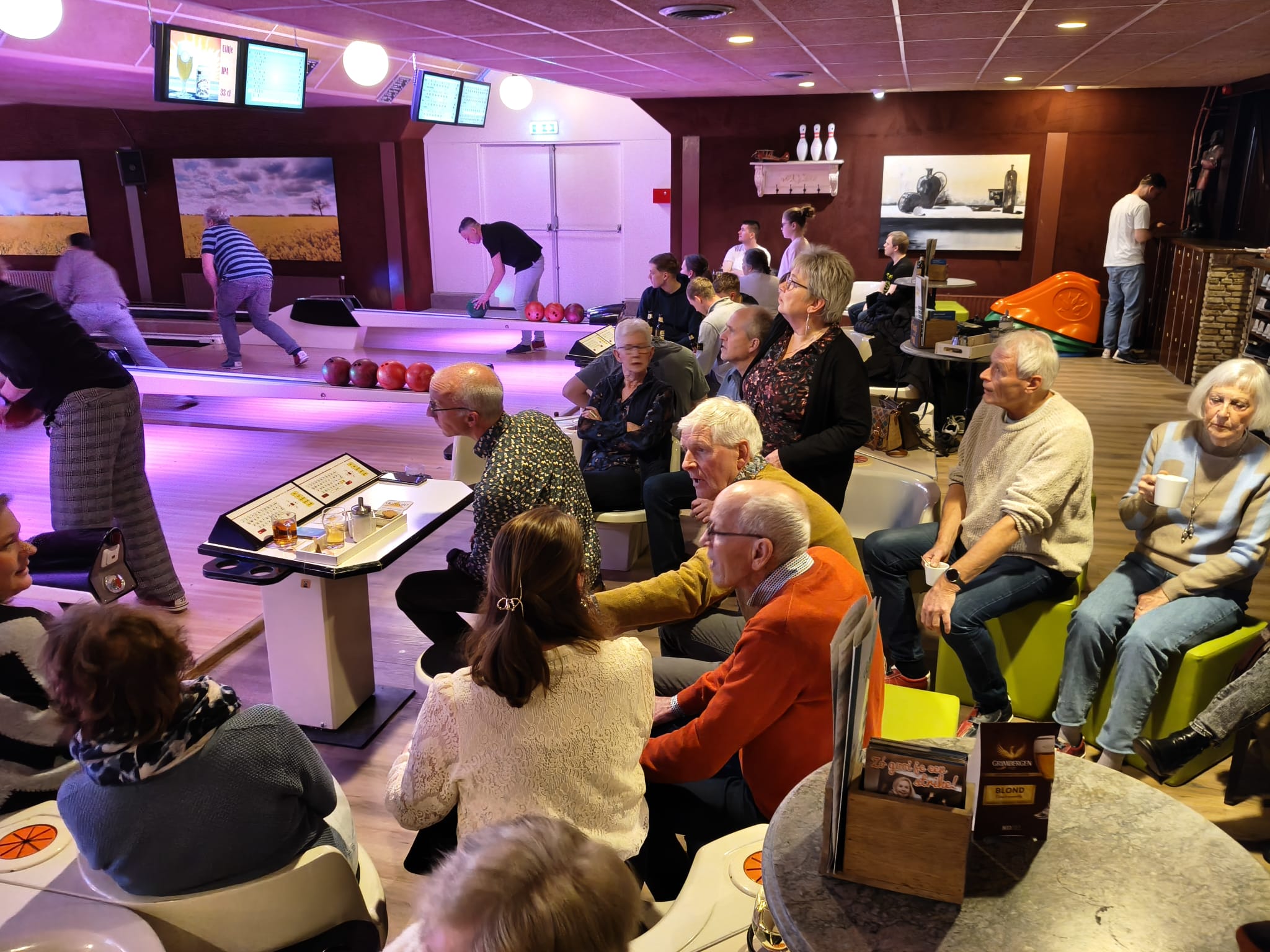 En waar het bij sommigen na lang geleden bowlen eerst weer even moest wennen, zag je na 1,5 uur ook bij deze personen de lach op het gezicht verschijnen of gingen de handen de lucht in wanneer alle kegels omgingen.