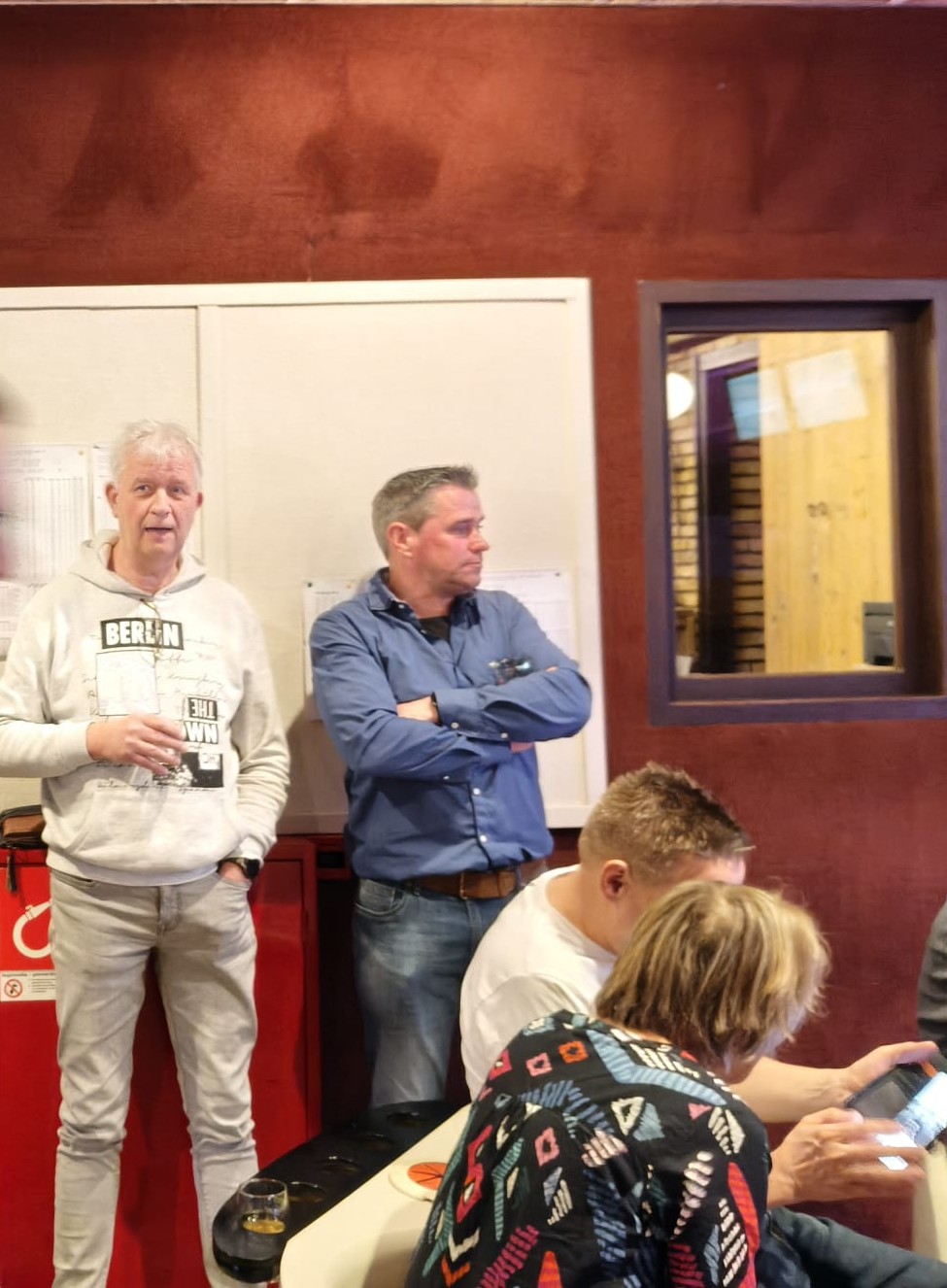 Gesteund door 4 publiekelijke vrijwilligers werd het een prachtige avond vol gezelligheid, sportiviteit, een drankje en geen enkel wanklankje. En was je even "vrij" van gooien dan kon je mooi even bijpraten met je buurman of buurvrouw die strijd leverde op een baan naast je.